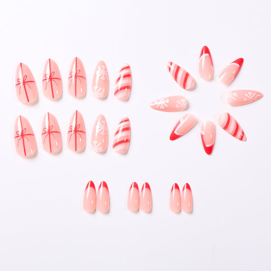 Ballet Pink Nails with White Stripes-24 pcs sizes & nail press on tools